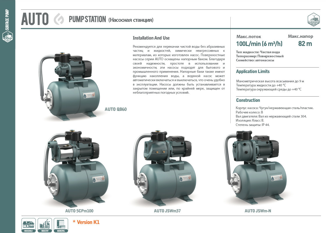 Насосная станция вихревая AUTOQB70 GRANDFAR