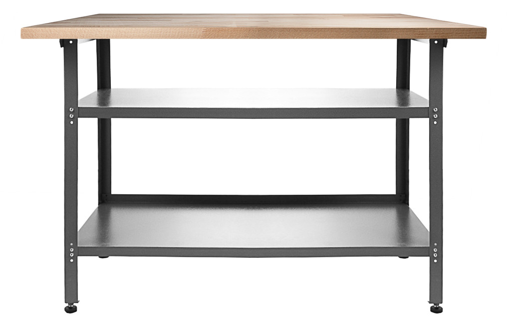 Стол-верстак BAUMEISTER BTC-006A предназначен для мастерских и гаражей, отлично подходит для ремонта, слесарных и ремесленных работ. Столешница изготовлена из высококачественного массива бука толщиной 27 мм, что обеспечивает высокую прочность и устойчивость к нагрузкам до 320 кг. Рабочий стол сочетает деревянные и металлические элементы, которые покрыты защитным полимерным слоем от коррозии и механических повреждений. Под столешницей расположены две большие открытые зоны хранения с общим грузоподъемным ресурсом каждой 80 кг, что позволяет удобно размещать инструменты и оборудование. Конструкция оснащена регулируемыми по высоте ножками, обеспечивающими устойчивость даже на неровных поверхностях. Такой верстак оптимален для организации рабочего пространства, где требуется прочность и надежность.